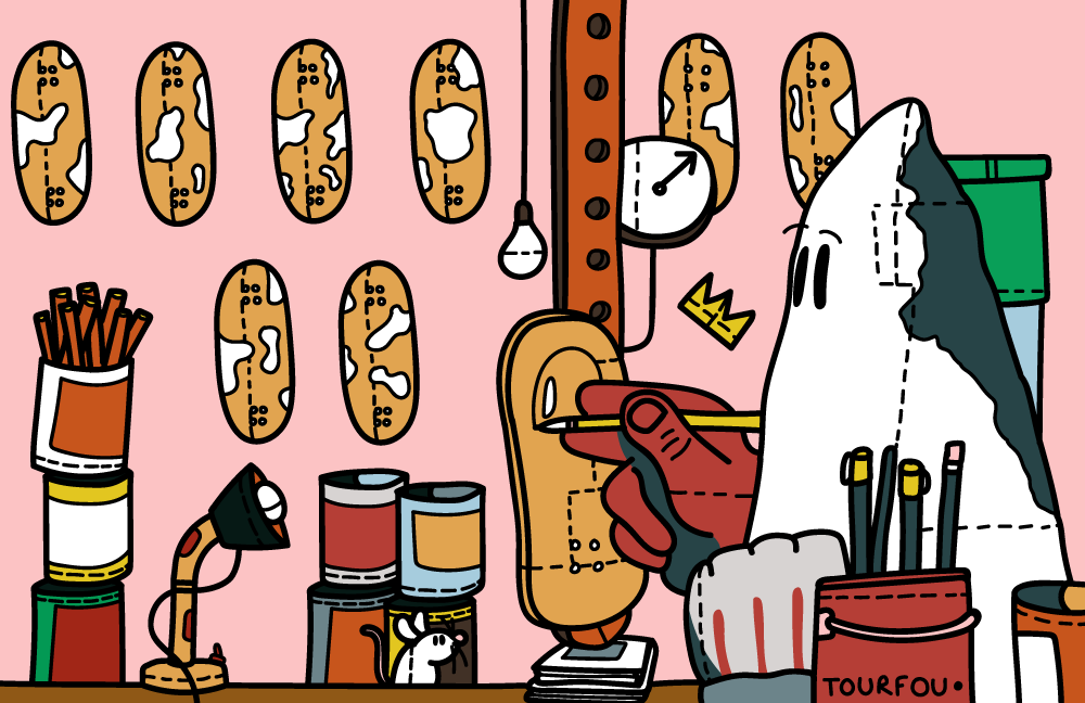 J'aime dessiner sur différents supports (skateboards, feuilles de papier, panneaux de chantier, objets du quotidien..). La particularité de mes créations se situe dans la quantité de détails qu'elles contiennent. Pour créer n'importe quel projet, je pars d'une idée parfois assez vague de ce à quoi j'aimerais arriver et je démarre sans plus de réflexion.