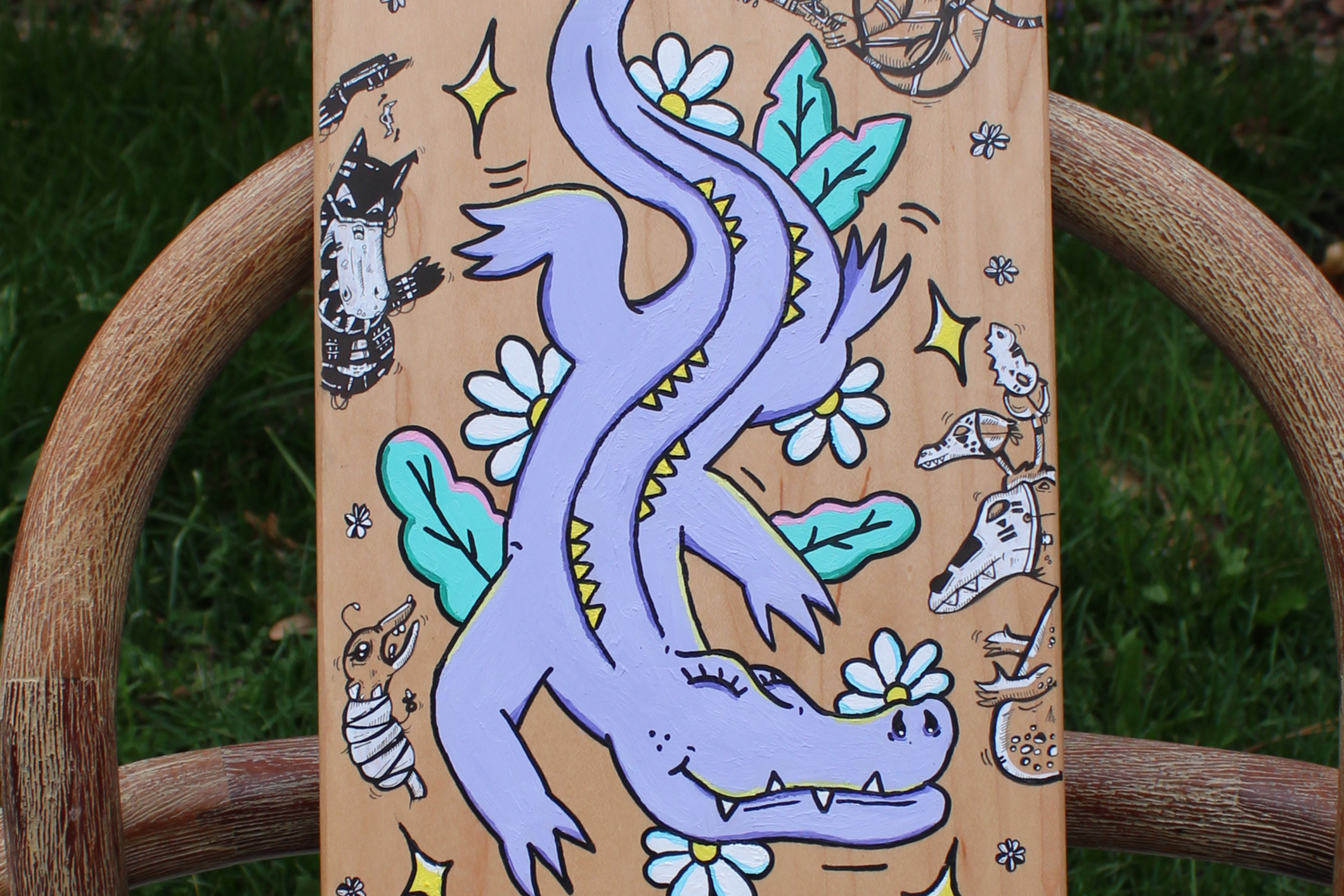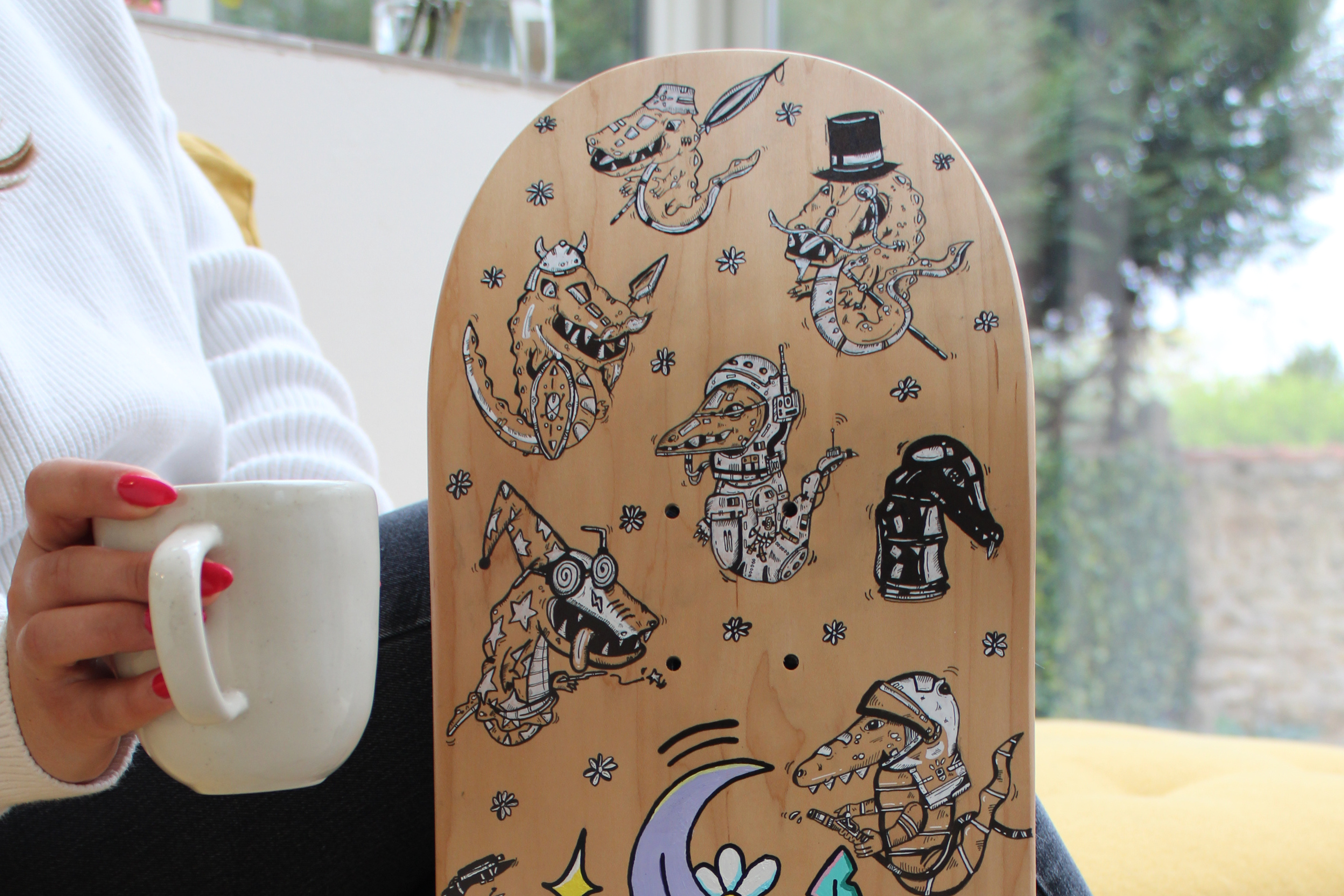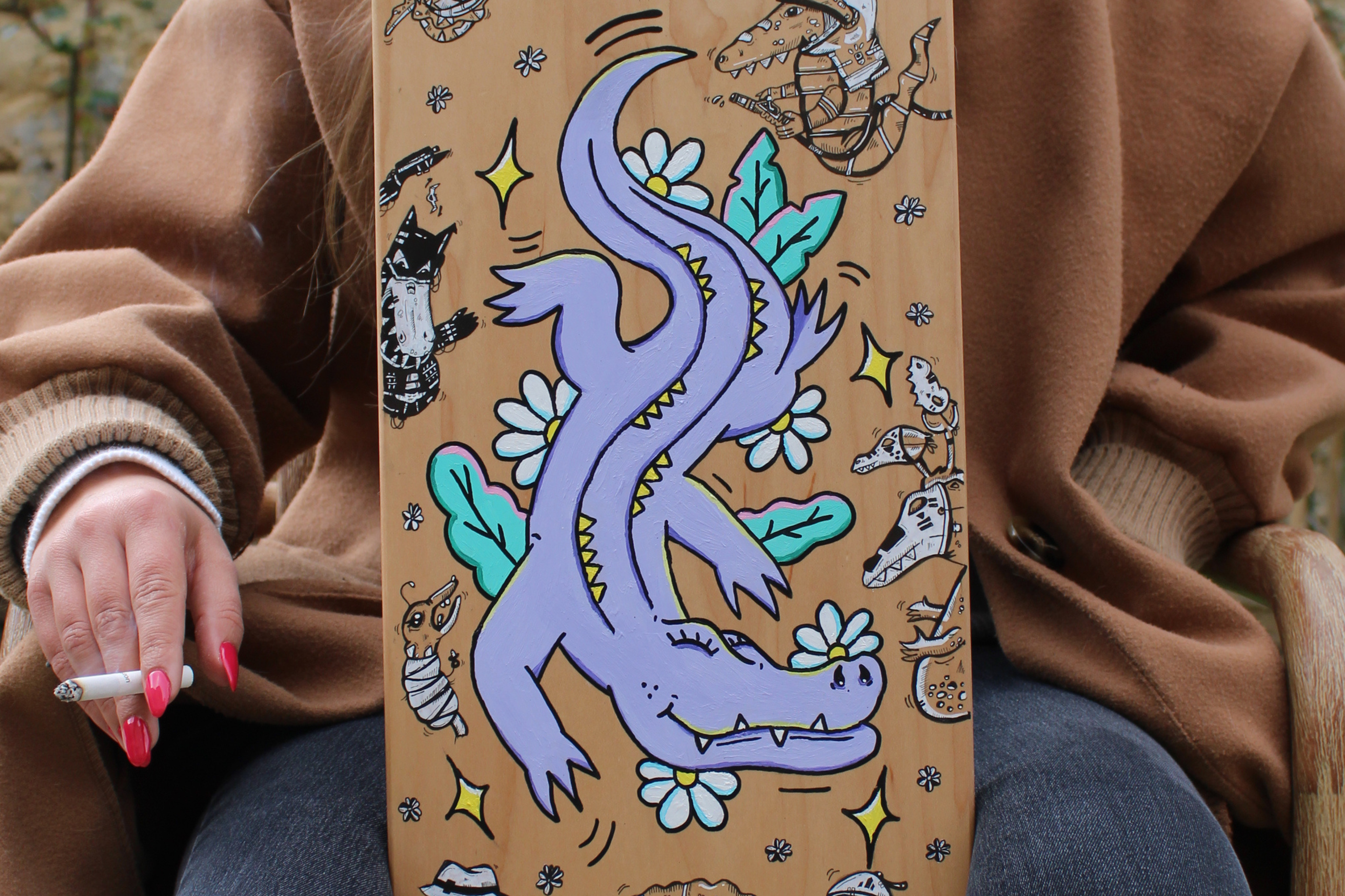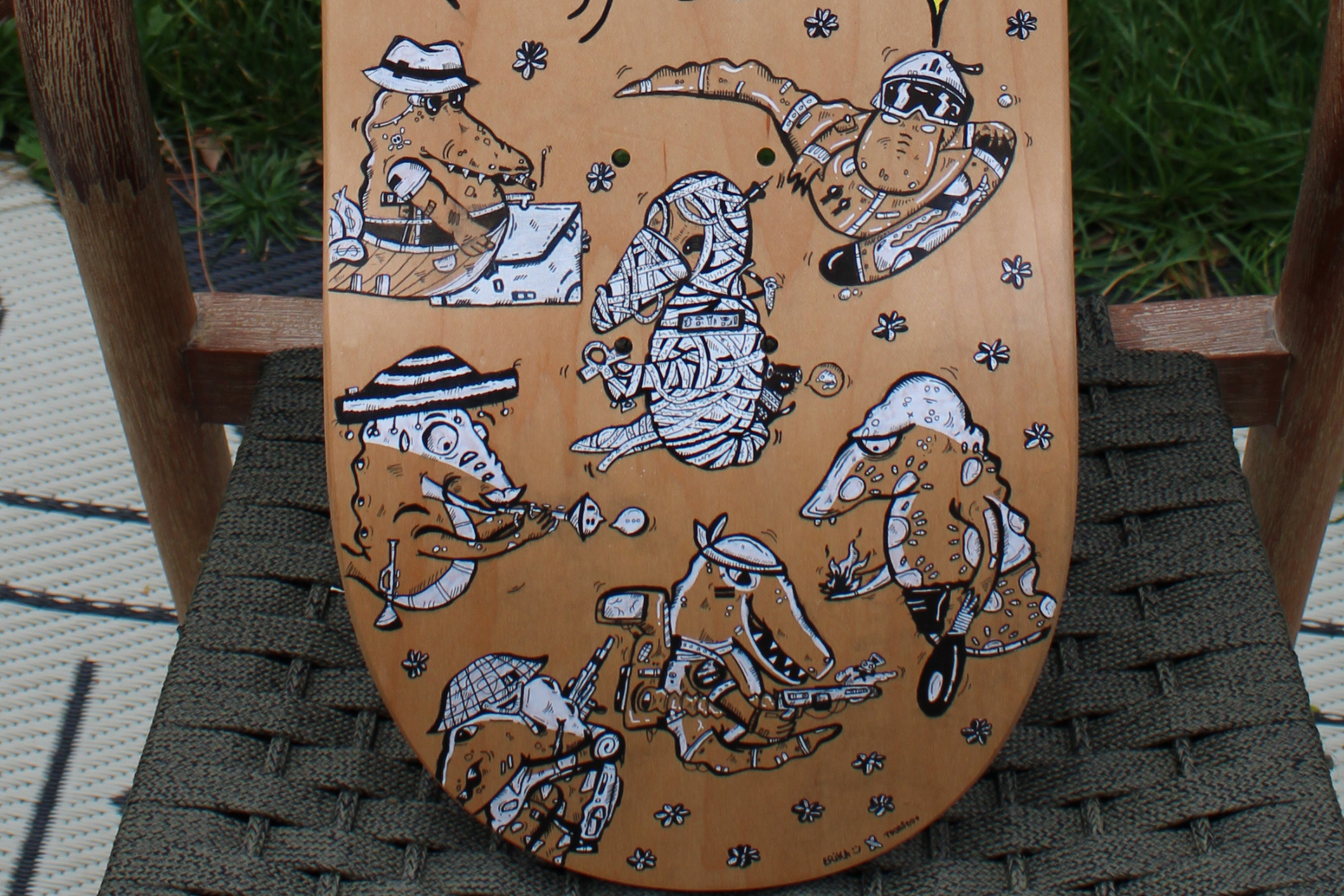 Planche réalisée en 2023 Travail collaboratif avec l'artiste Erika Garcia Techniques : Marqueurs à encre noire, feutres blancs et peinture