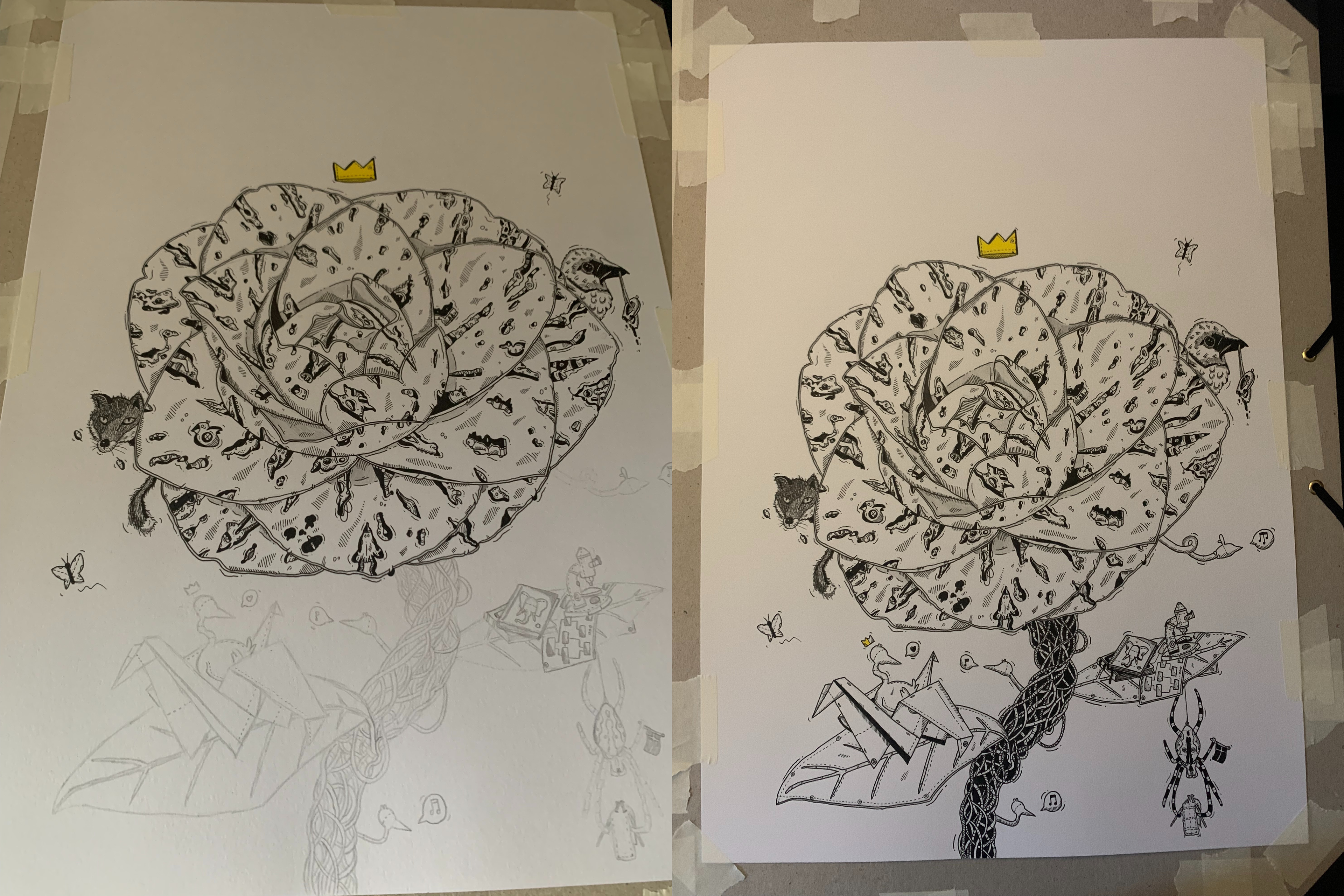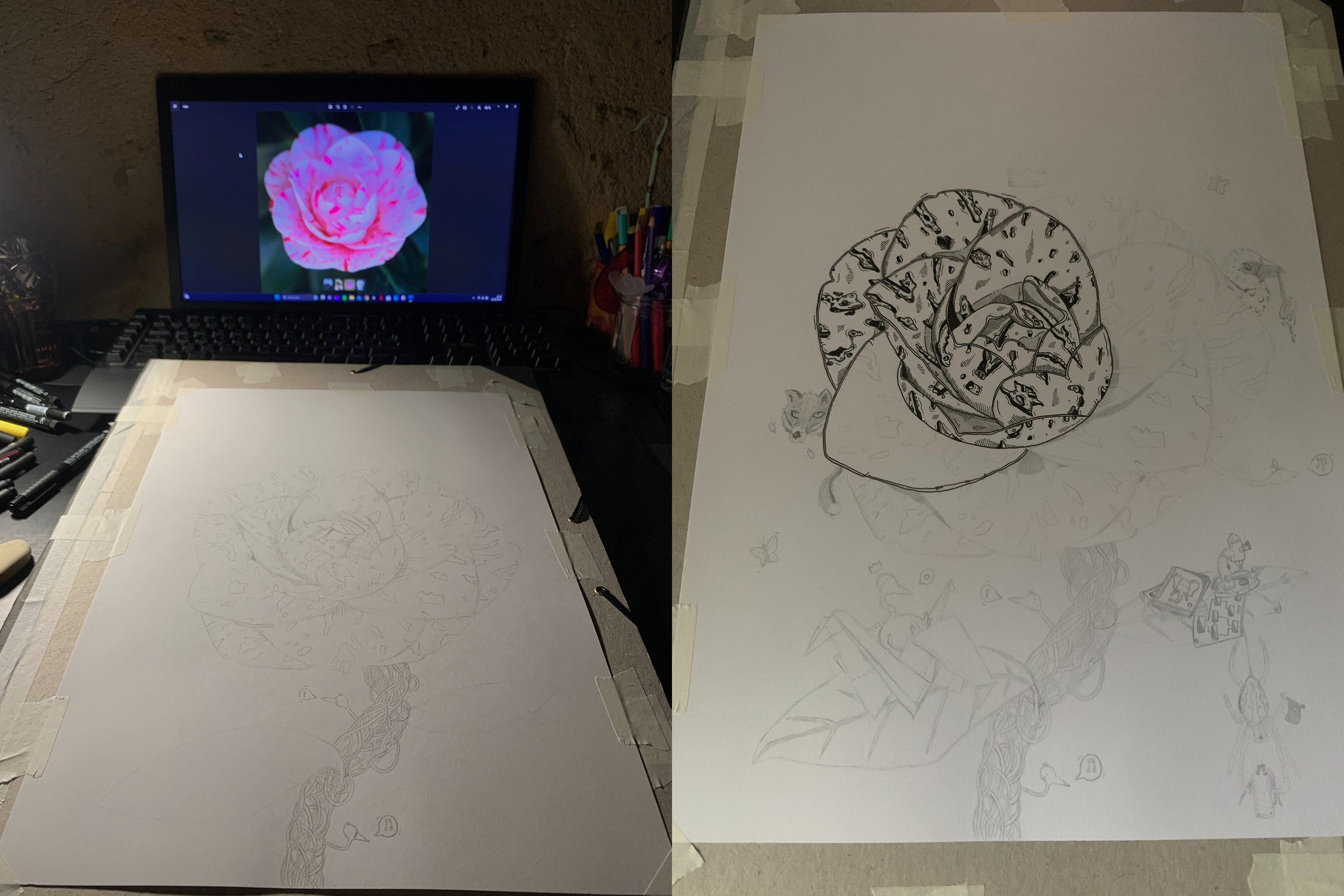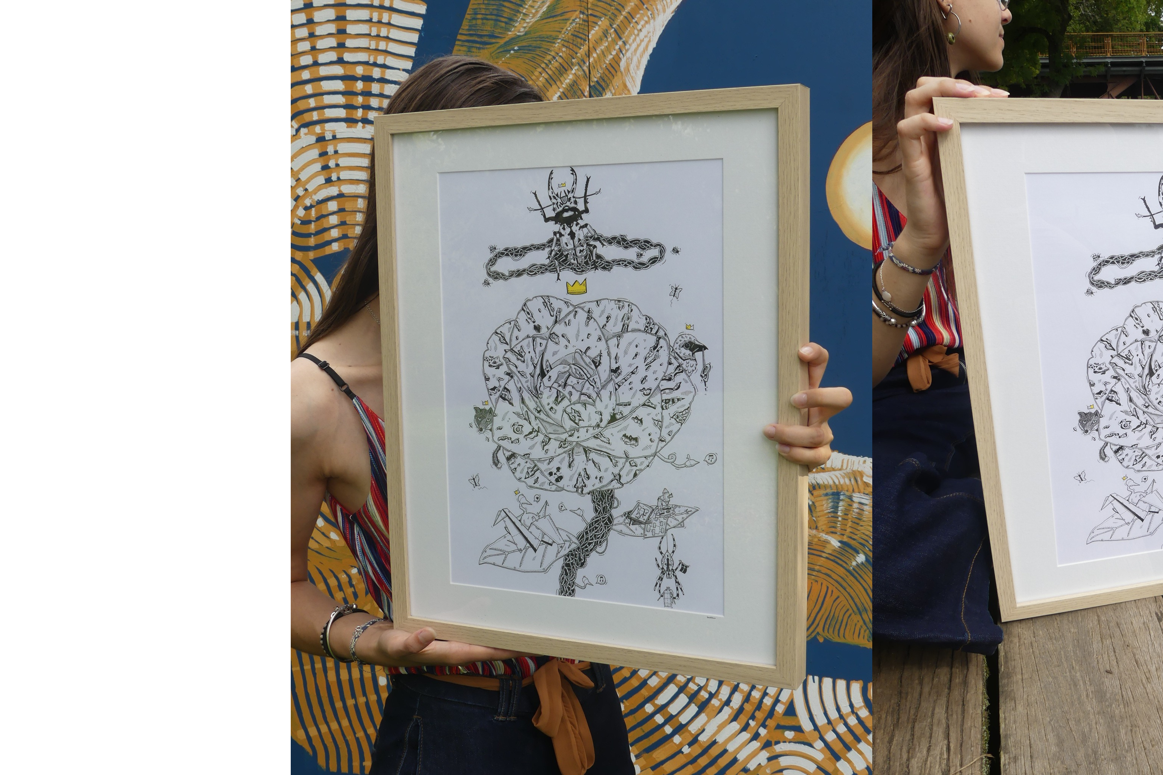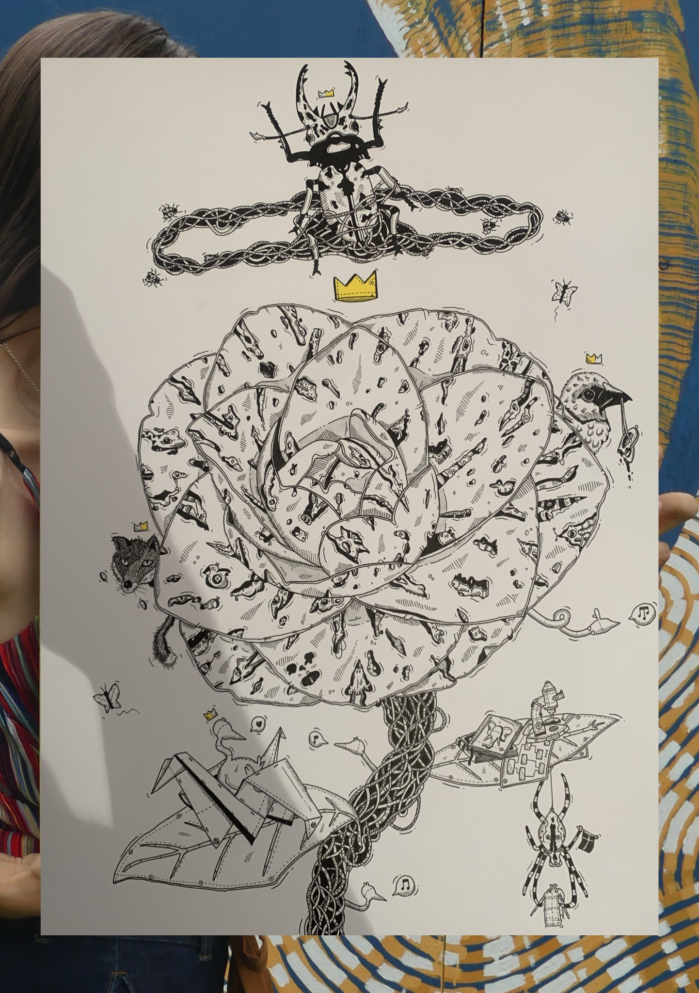 Dessin réalisé en 2023 50 x 40 cm Techniques : Marqueurs à encre noire, feutres de couleurs