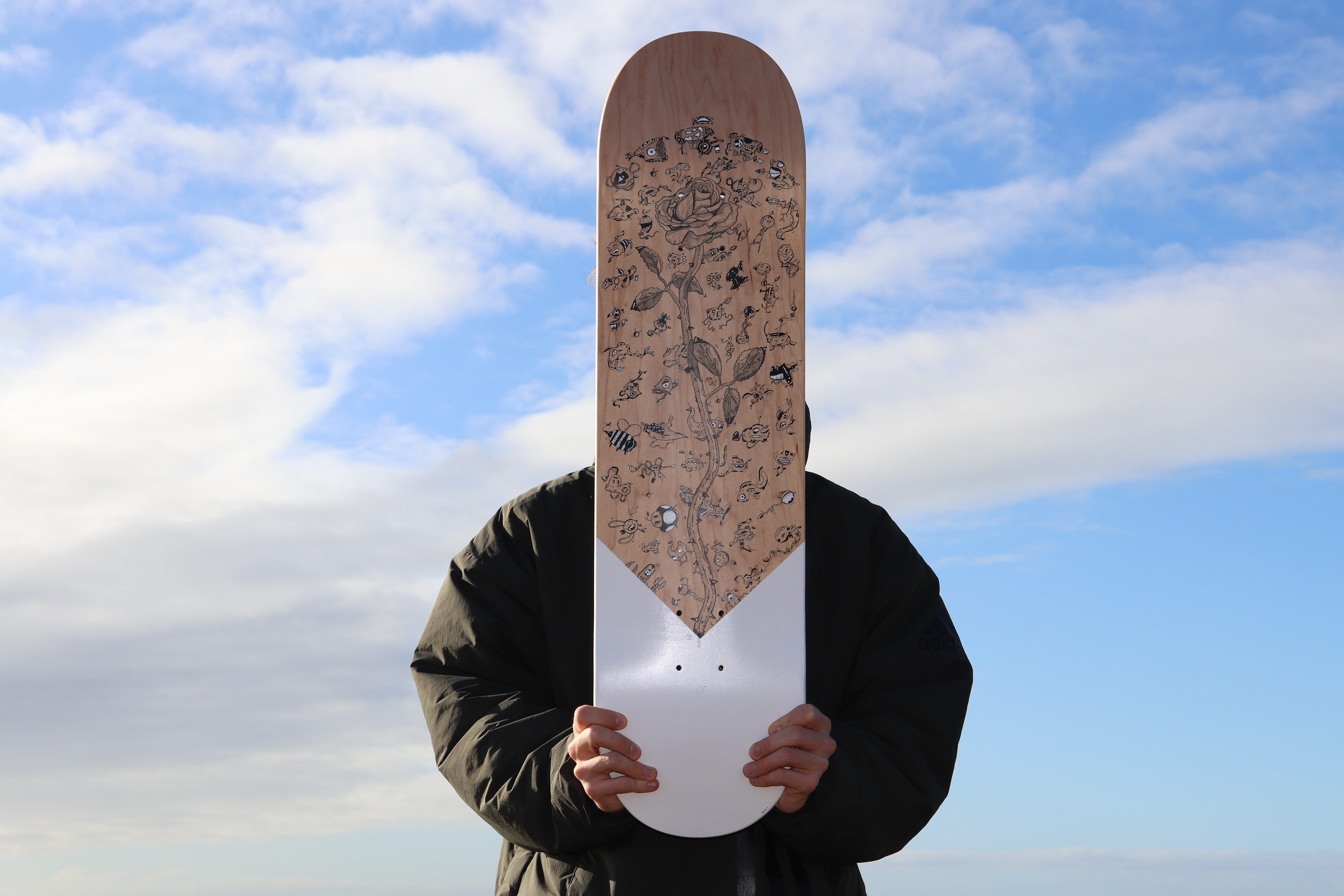 Planche réalisée en 2022 Techniques : Marqueurs à encre noire, feutres blancs et peinture