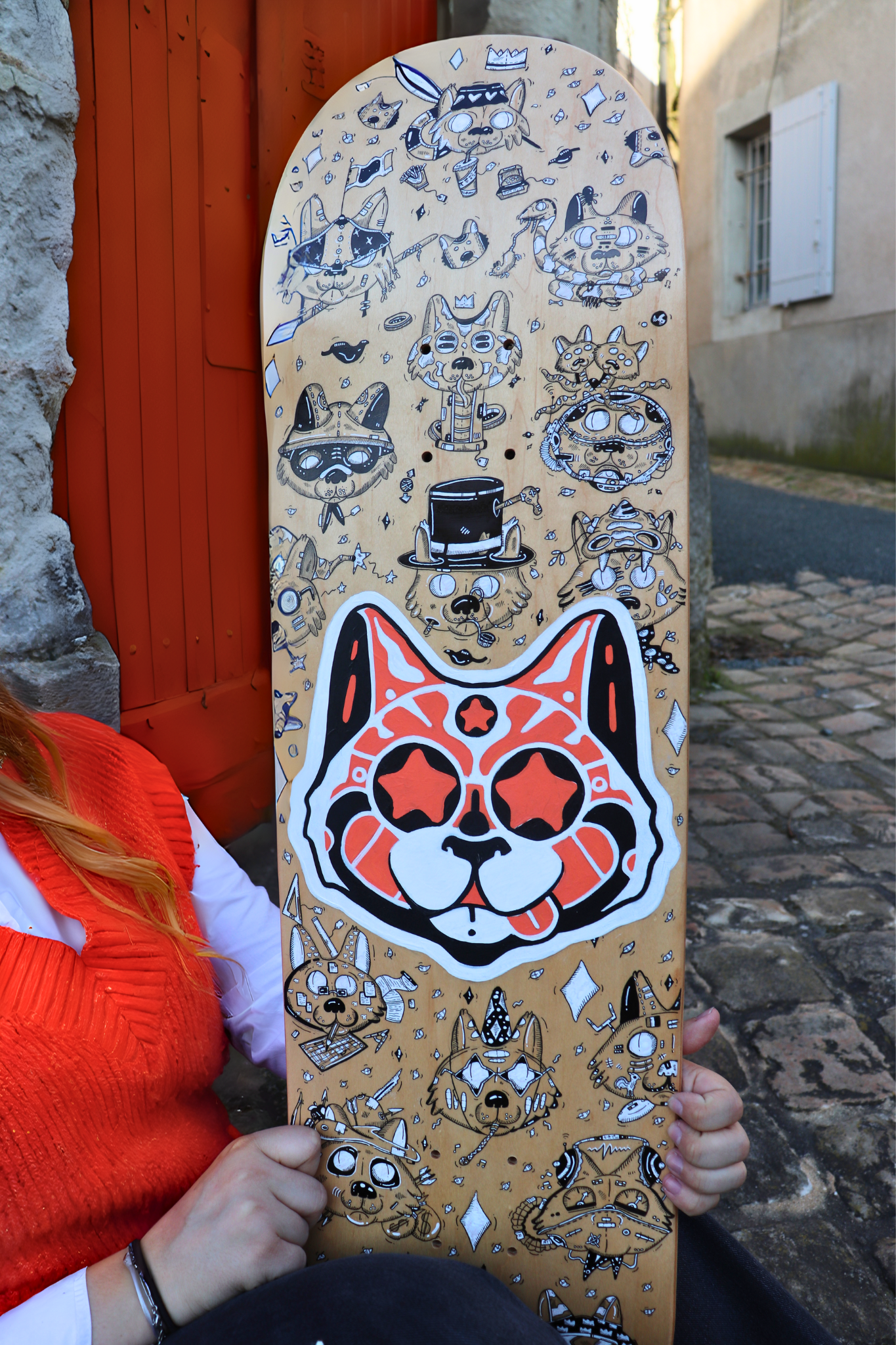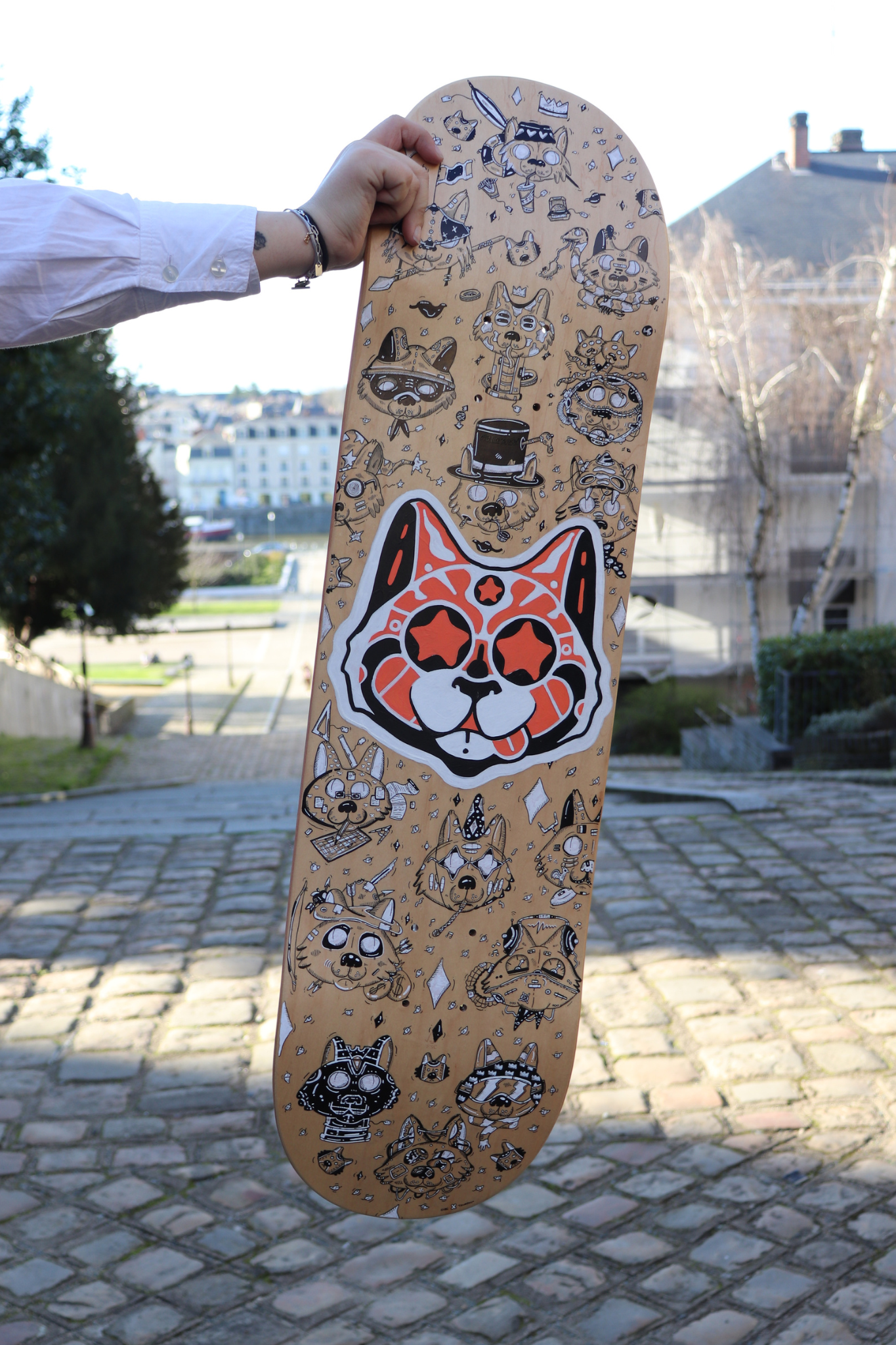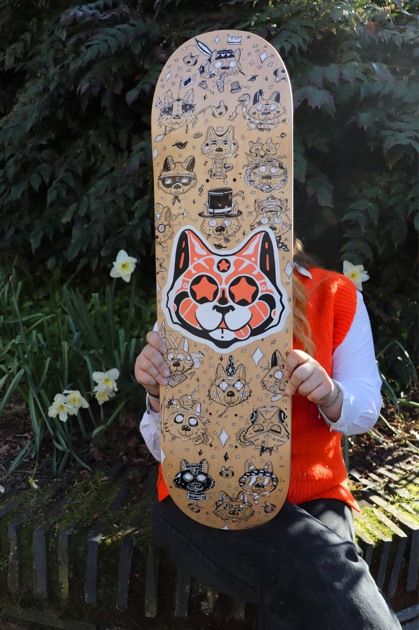 Planche réalisée en 2024 Travail collaboratif avec l'artiste Cubi Techniques : Marqueurs à encre noire, feutres blancs et peinture