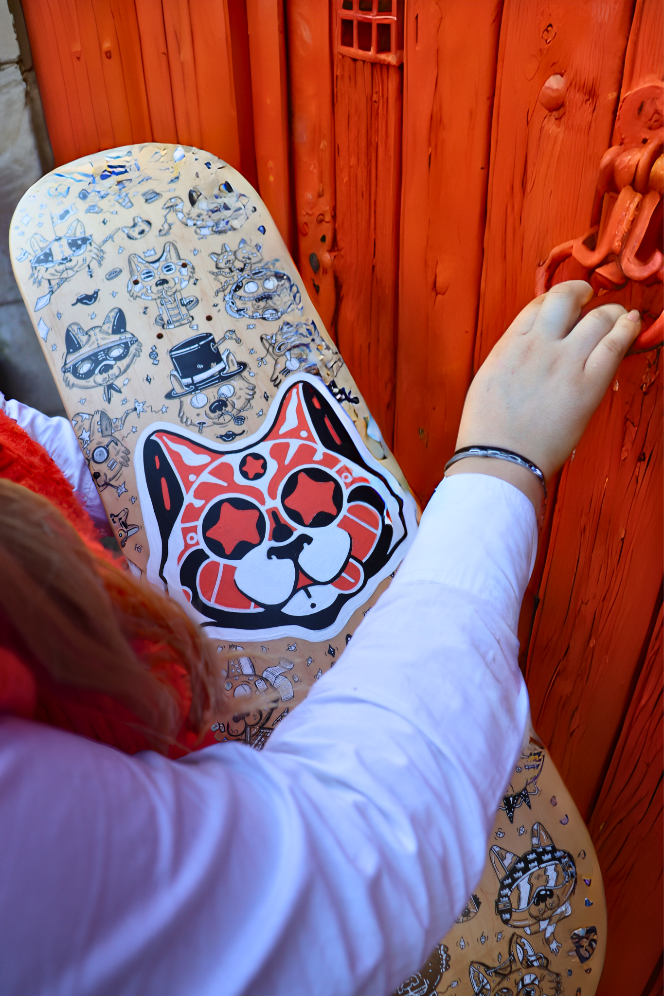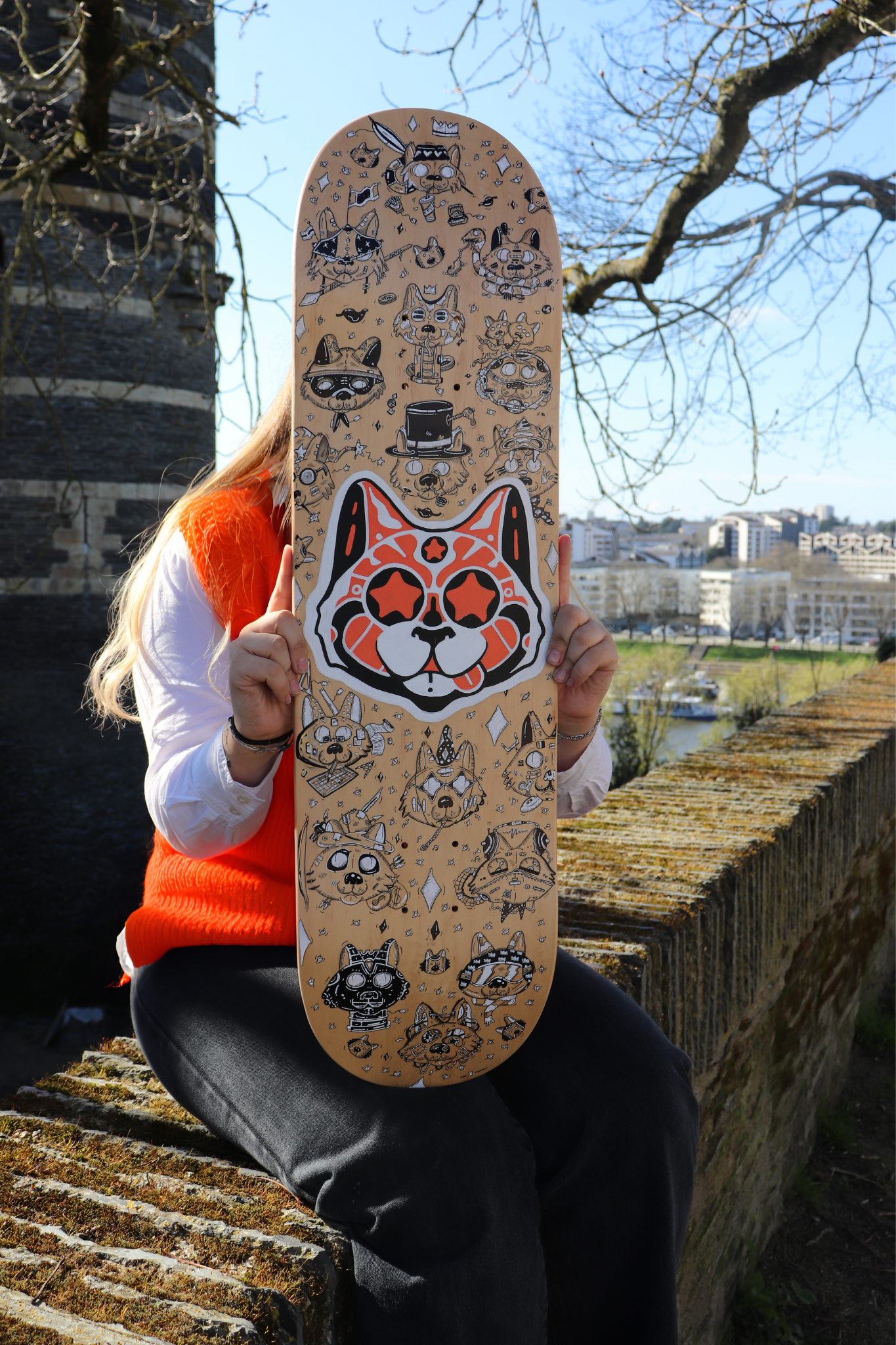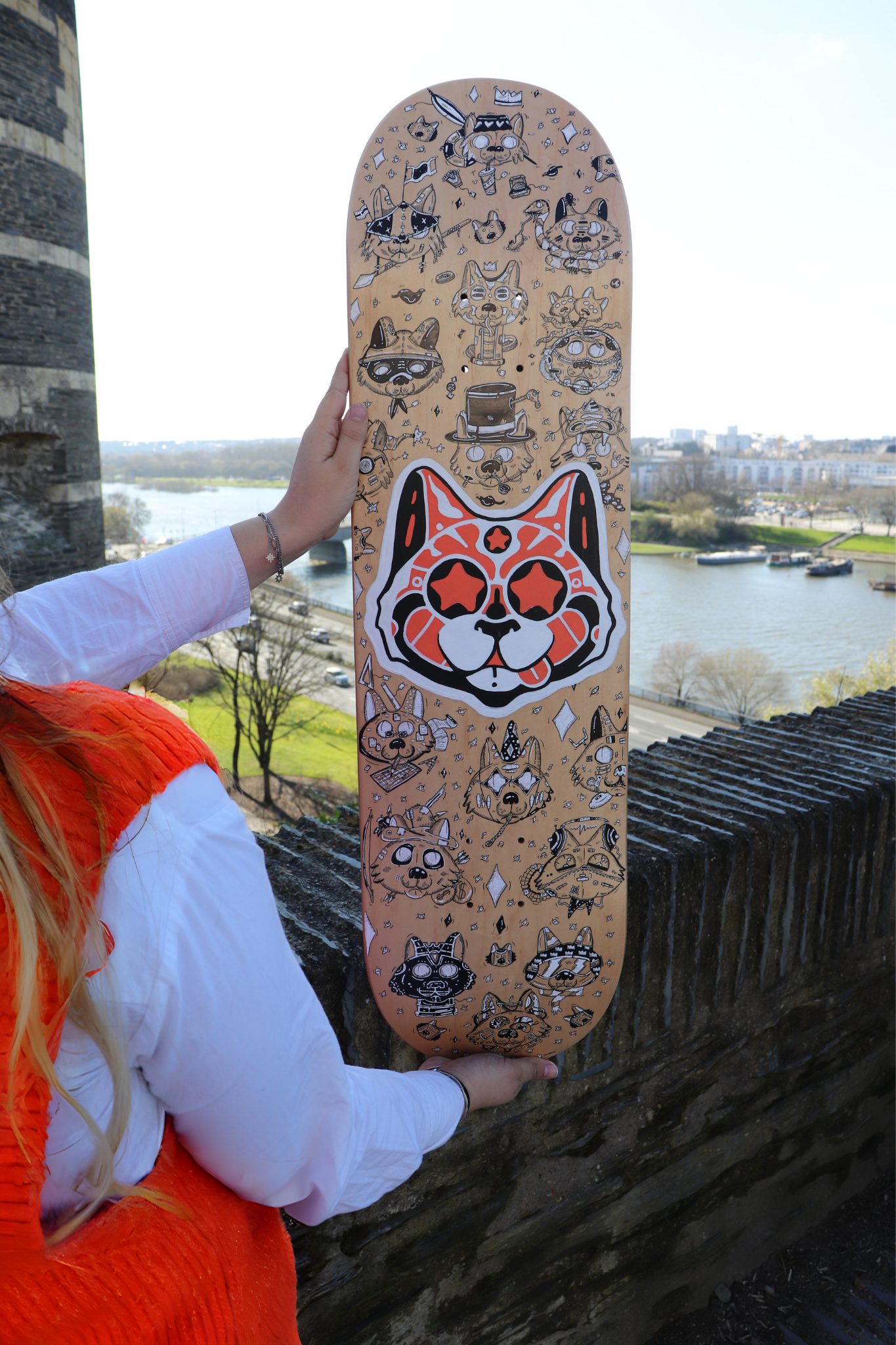Planche réalisée en 2024 Travail collaboratif avec l'artiste Cubi Techniques : Marqueurs à encre noire, feutres blancs et peinture