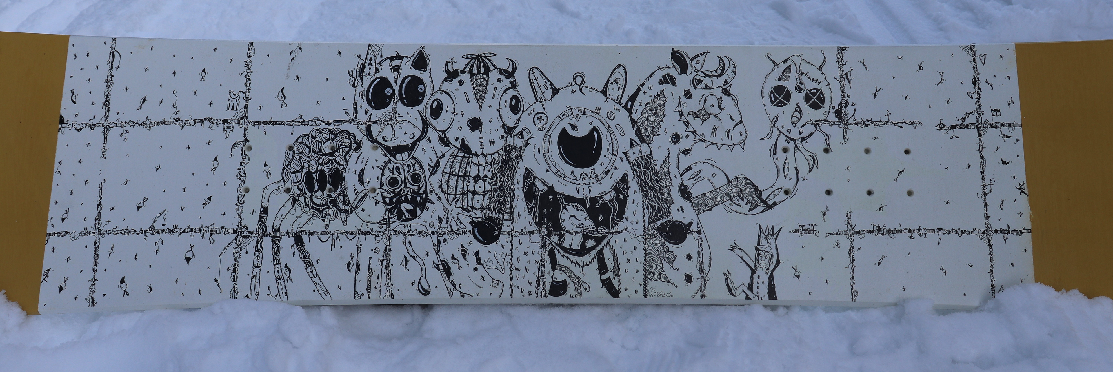 Planche réalisée en 2022 Techniques : Marqueurs à encre noire, feutres blancs et peinture
