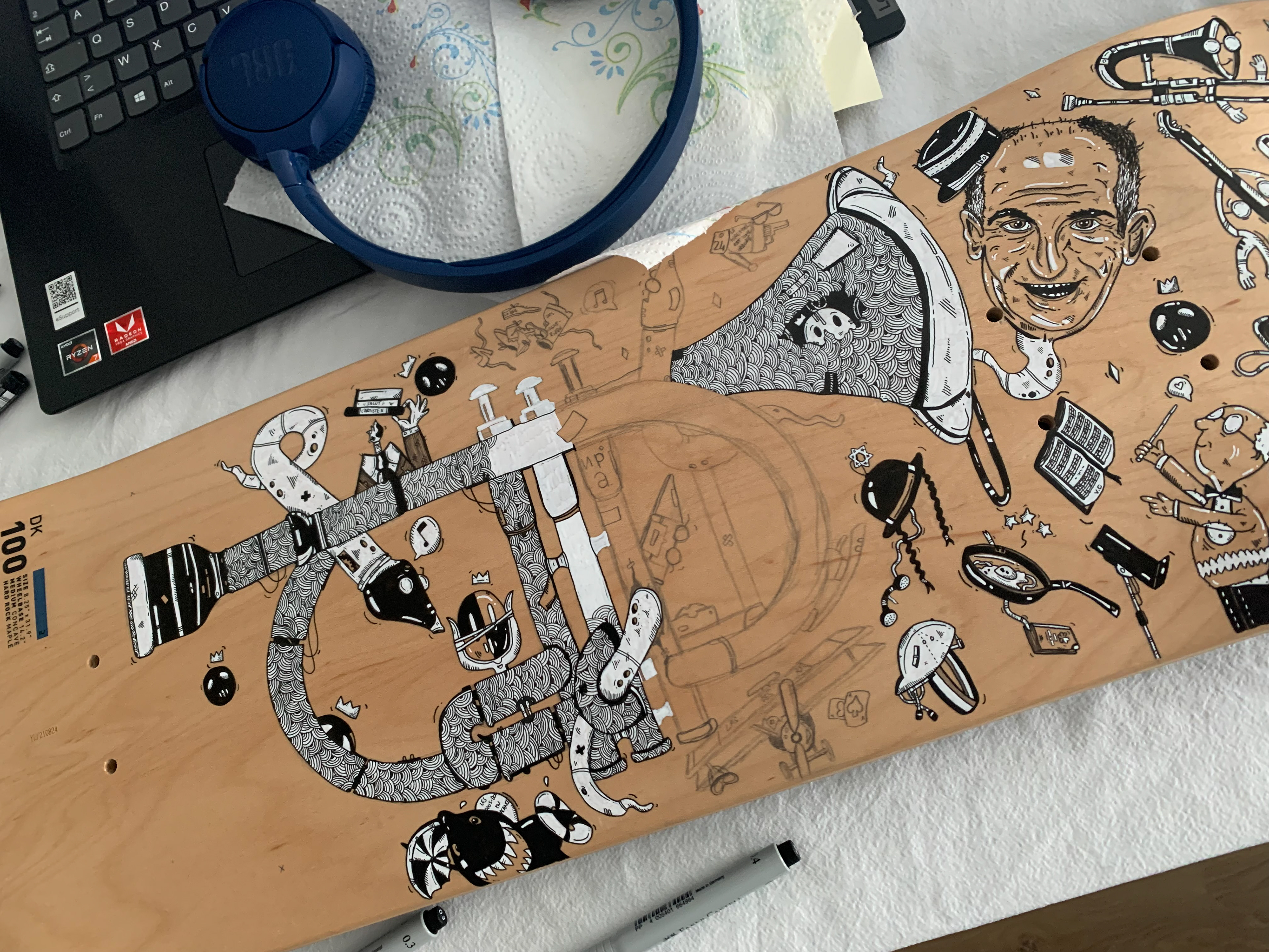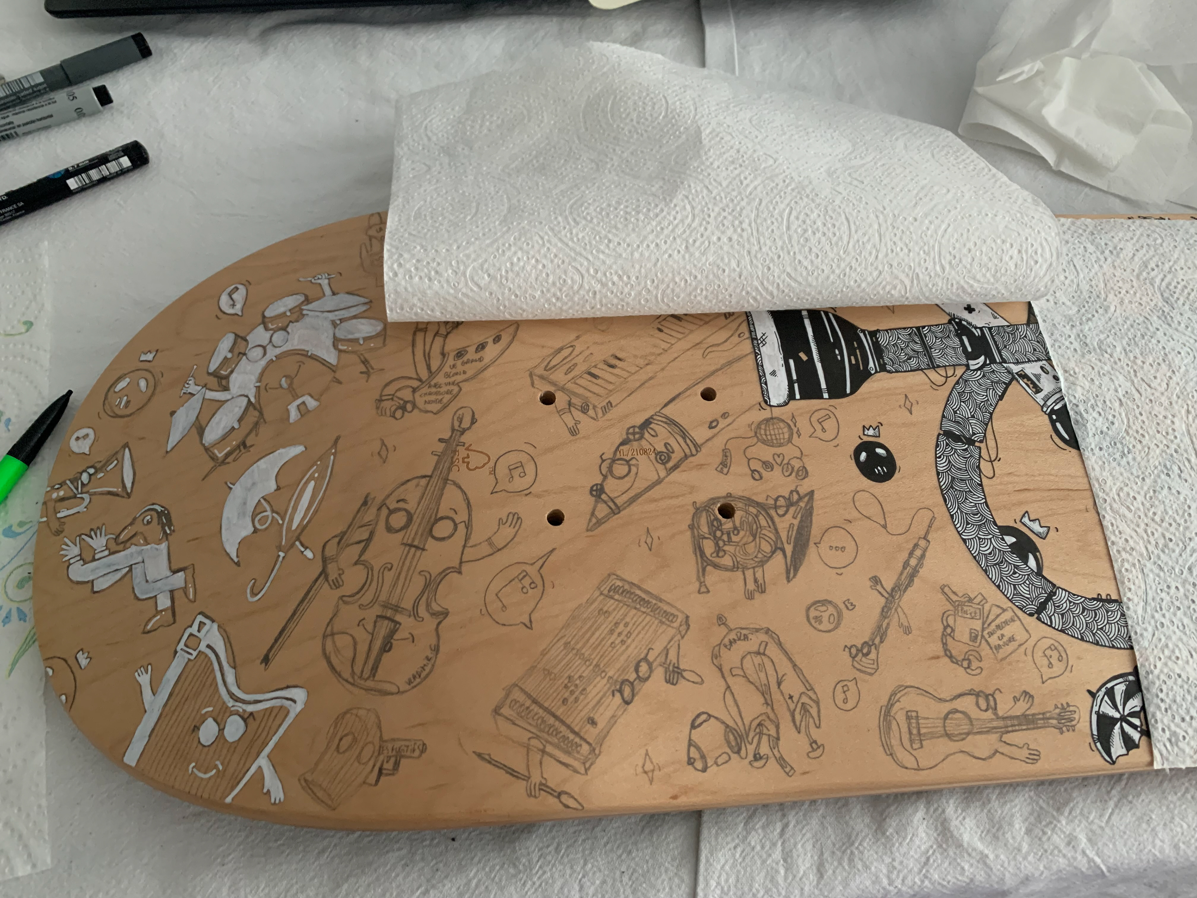 Planche réalisée en 2023 Techniques : Marqueurs à encre noire et feutres blancs